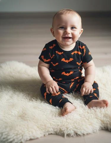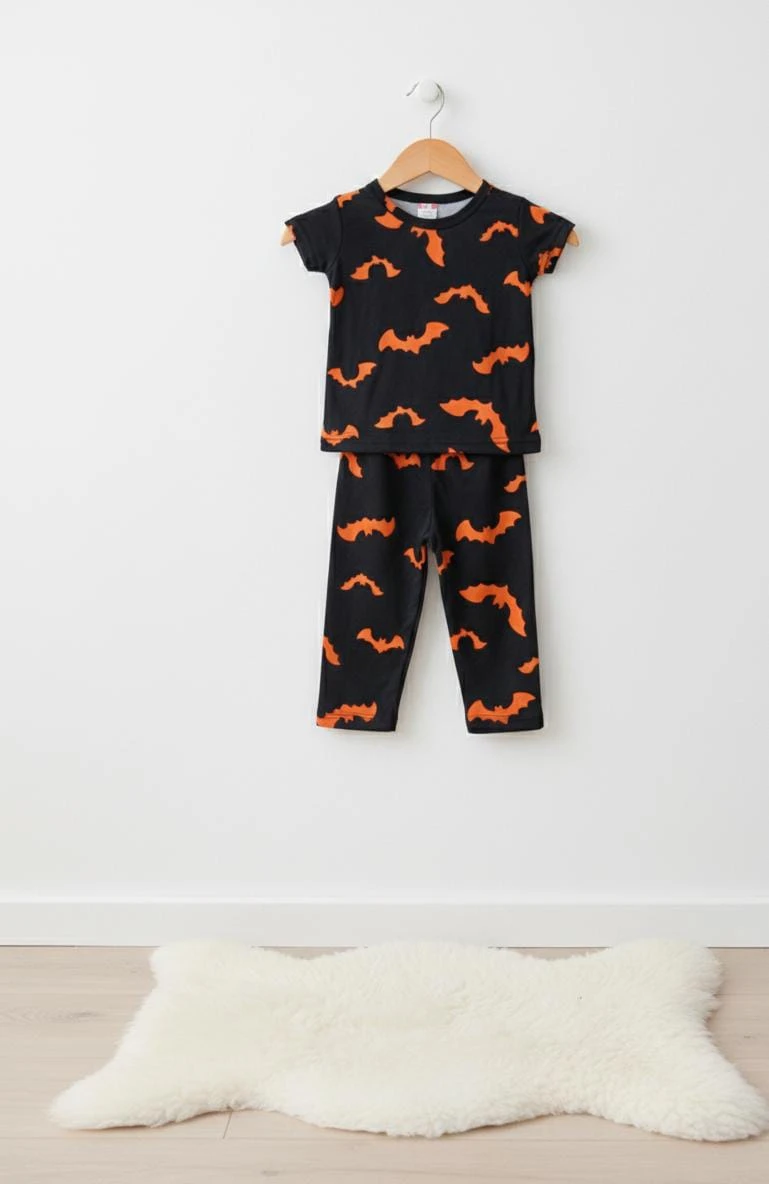 Black with Orange Bat Print