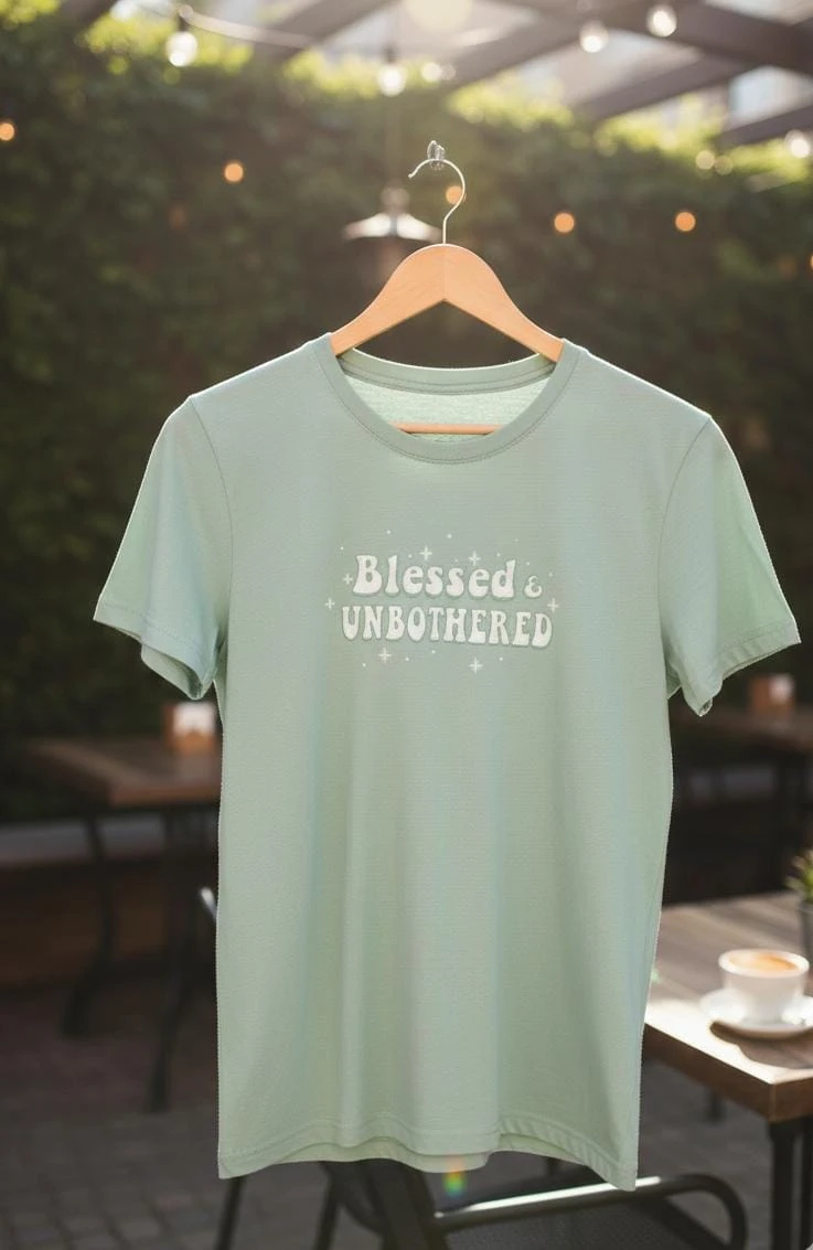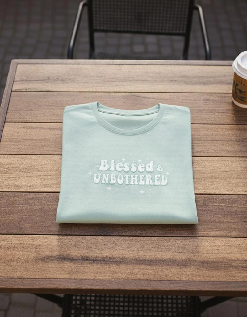 Stay calm, confident, and stylish with our “Blessed & Unbothered” printed T-shirt. Designed for everyday comfort, this premium cotton tee features a soothing mint green shade and minimal typography, making it perfect for casual outings, coffee dates, travel, or daily wear. Soft on skin and easy to style with jeans, trousers, or skirts.
