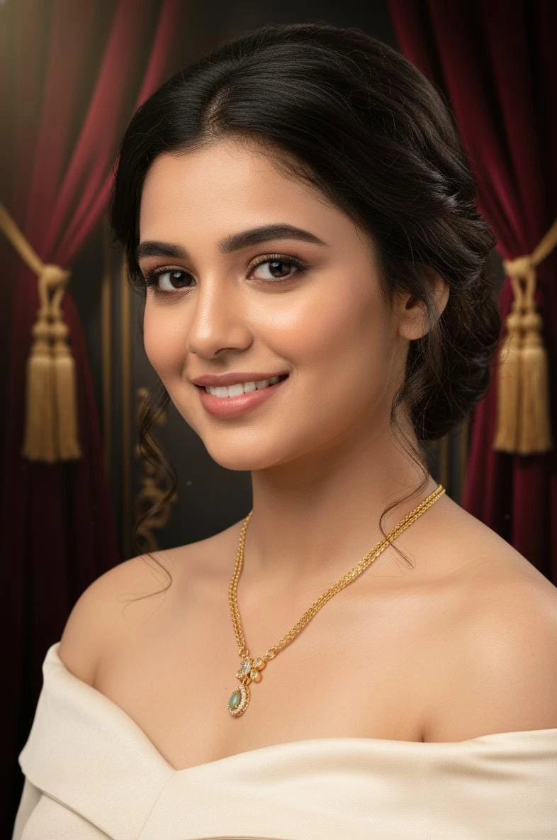 A refined gold-tone chain featuring a delicate floral-inspired pendant with a sparkling white stone and a graceful green teardrop center. Designed to sit perfectly at the neckline, this necklace adds subtle luxury to festive wear, parties, and special occasions without looking heavy or overdone. Ideal for women who prefer timeless elegance over flashy designs.