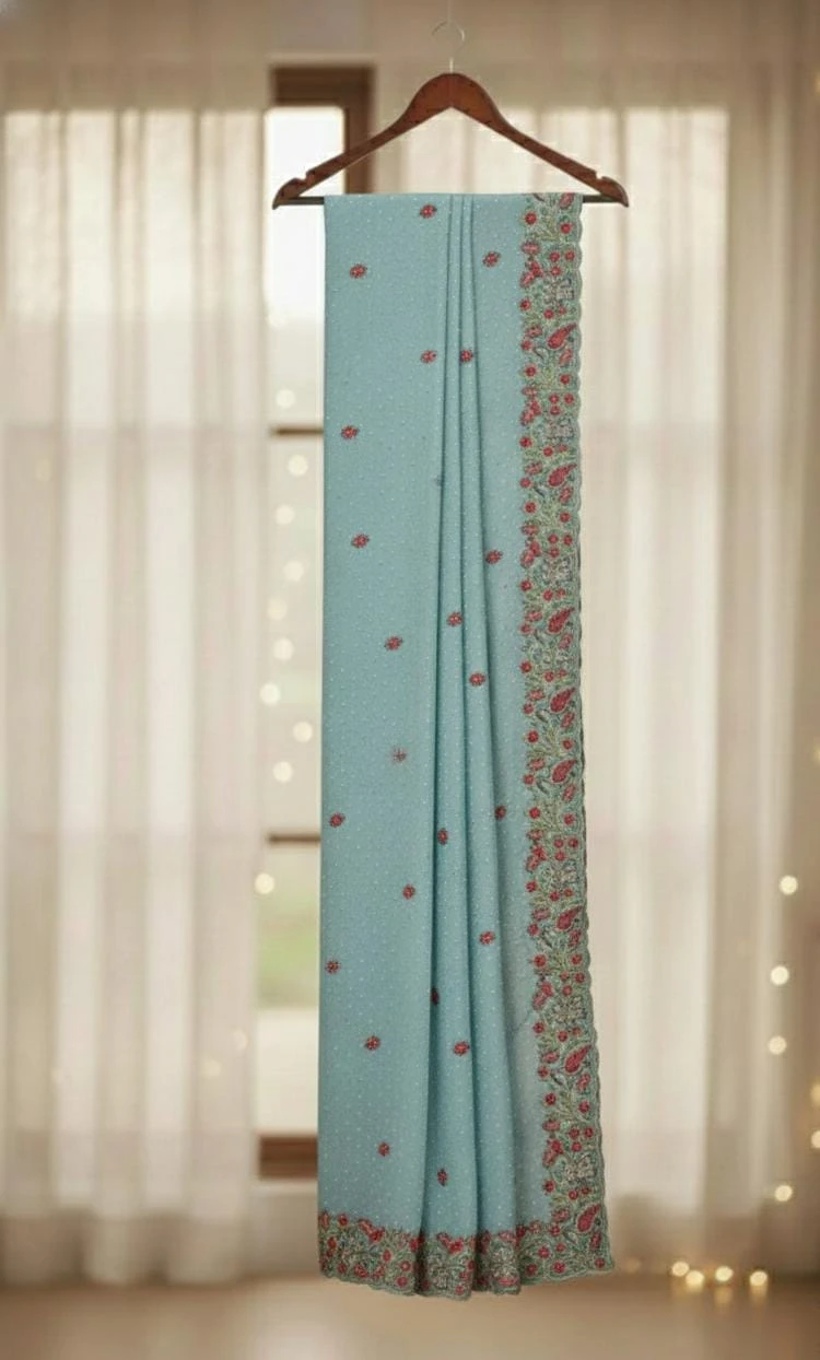 Full work fancy tissue saree Pastel Aqua Blue / Sea Green Soft, soothing tone with a premium elegant look