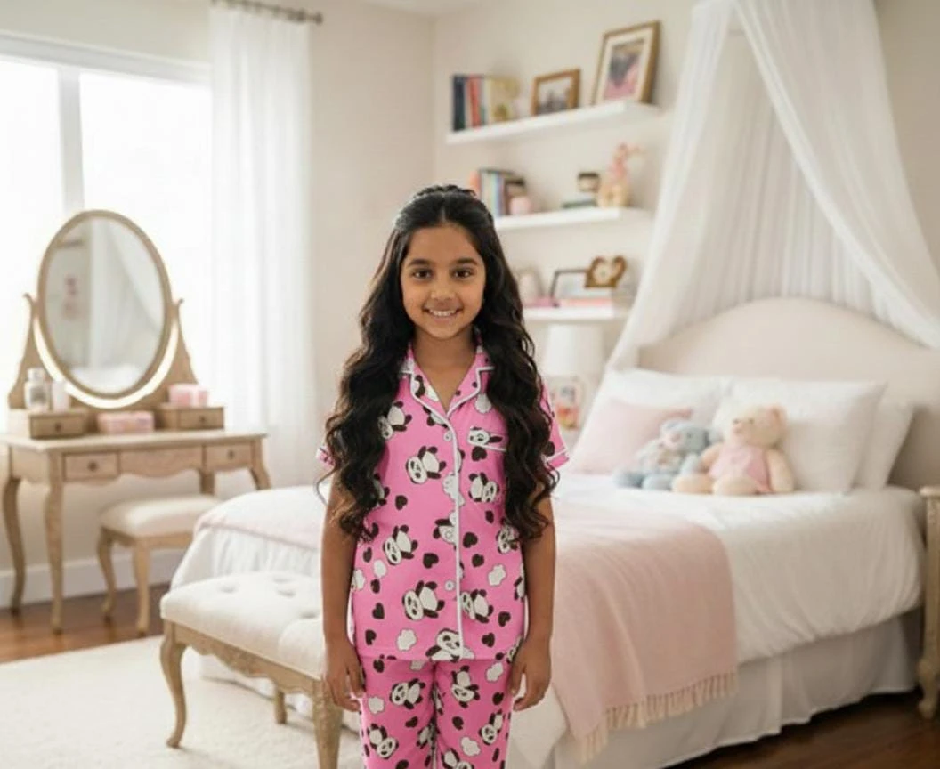 Girls Printed Cotton Night Suit Set (8–9 Years)