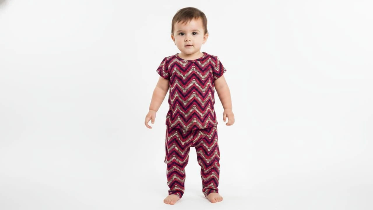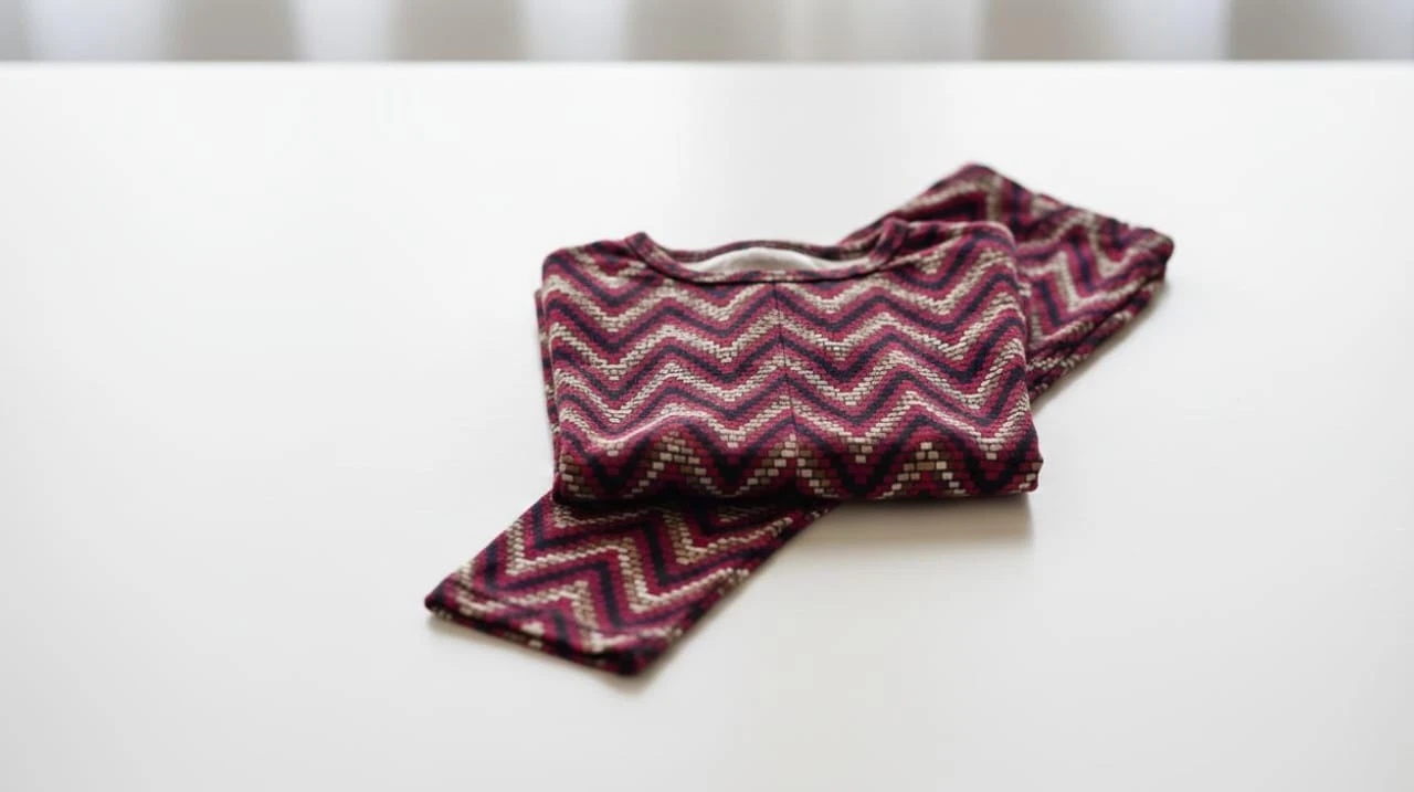 A comfortable maroon nightwear set featuring a trendy chevron pattern, crafted from soft fabric for easy movement, cozy sleep, and everyday comfort.