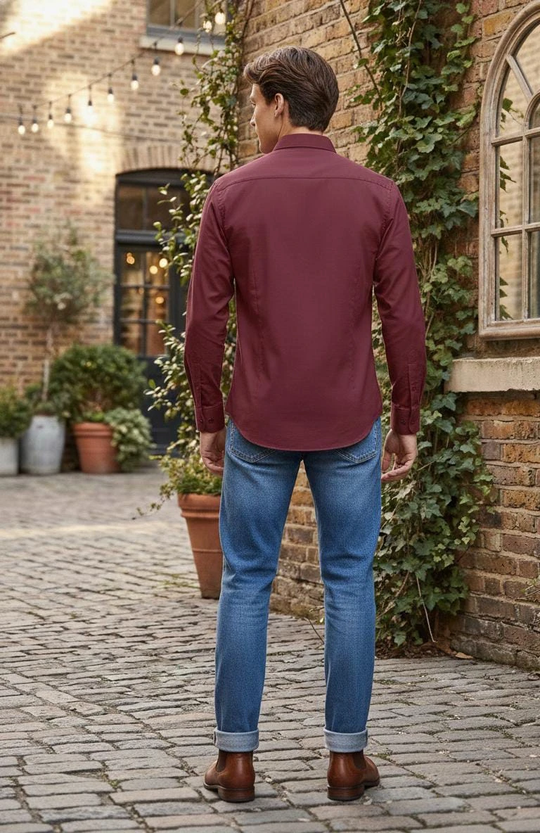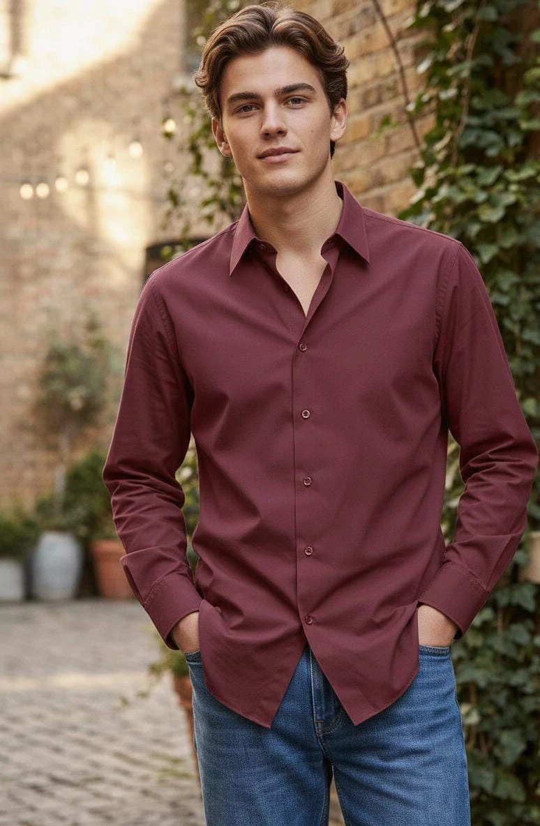 Add a refined touch to your everyday style with this elegant maroon linen shirt. Crafted from breathable linen fabric, it offers a lightweight, airy feel while ensuring lasting comfort throughout the day. Designed with a classic collar, full-button front, and a neat tailored fit, this shirt blends casual ease with smart appeal. Perfect to pair with jeans or chinos, it’s an ideal choice for casual outings, dinners, or relaxed smart-casual looks.