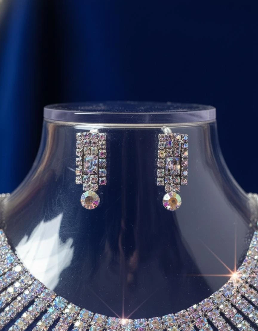 Elegant crystal necklace set with cascading brilliance, paired with matching drop earrings for a timeless, luxurious look.