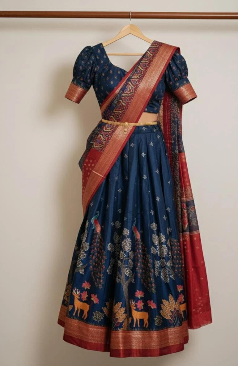 1 Langa (Skirt), 1 Voni / Dupatta, 1 Blouse Piece (Unstitched / Semi-stitched – mention as applicable)