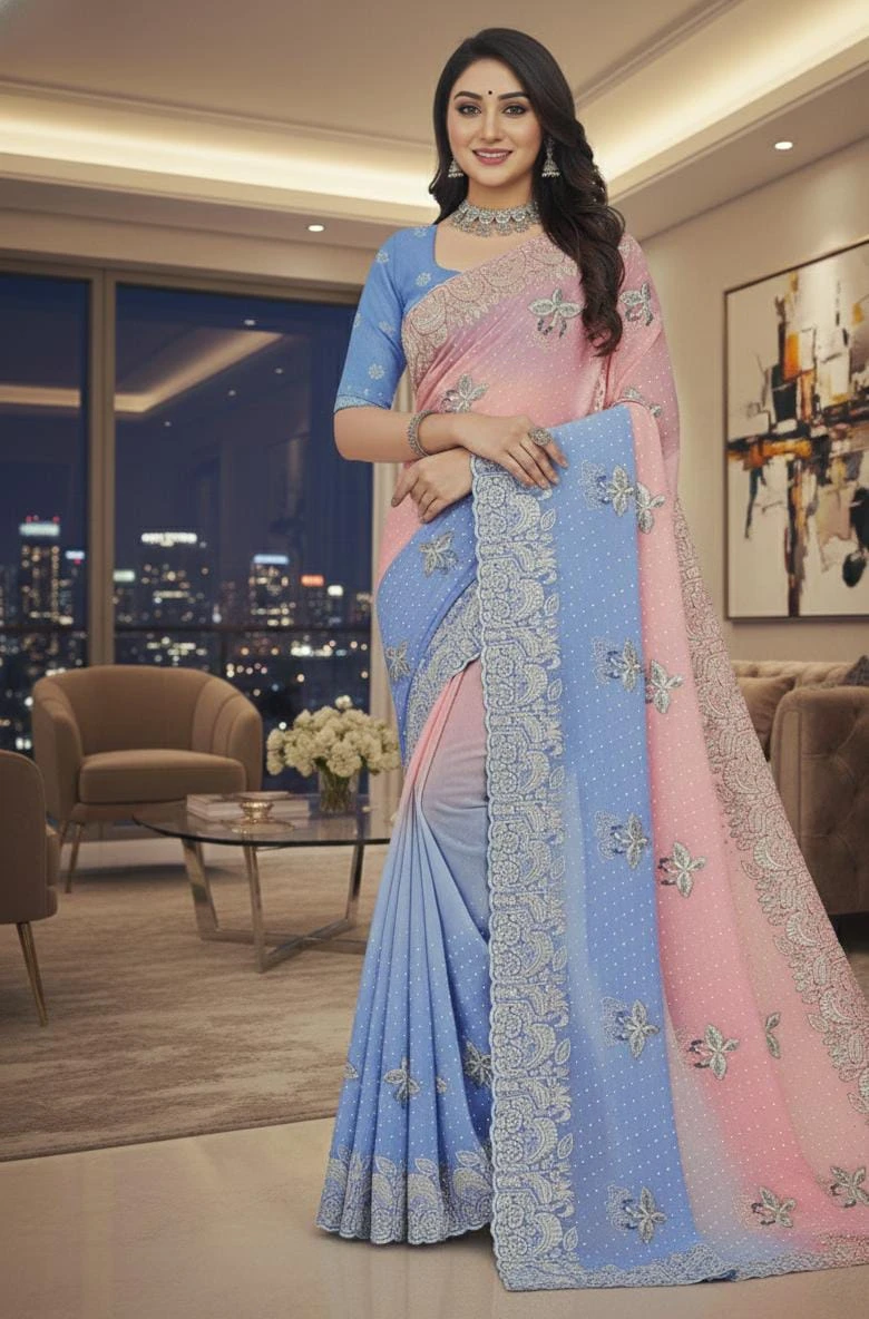 Double-Shaded Fancy Tissue Saree