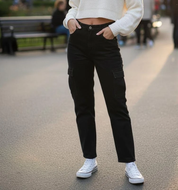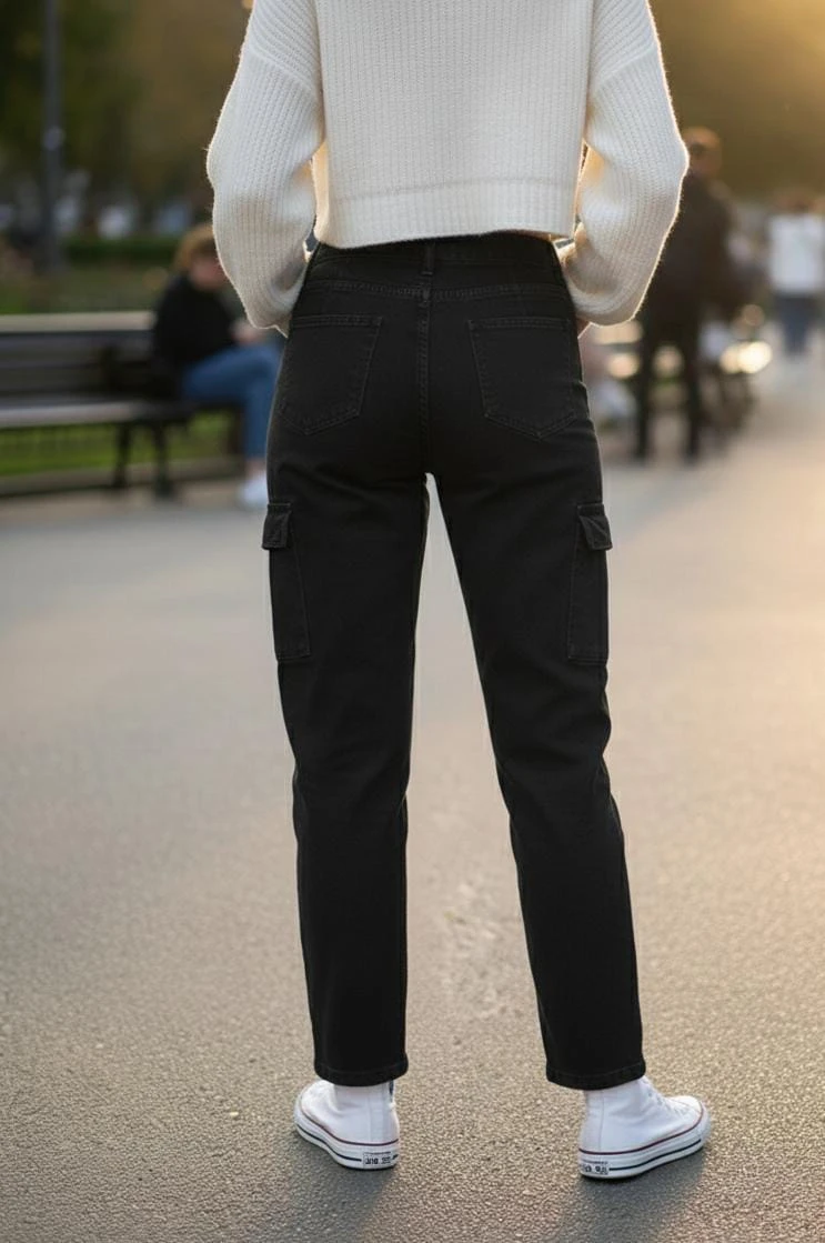 Step out in confidence with these stylish black high-waist cargo jeans. Featuring a straight-fit silhouette and practical side cargo pockets, they combine modern street style with everyday comfort. Crafted from sturdy denim, these jeans are perfect for casual wear, college days, or relaxed outings. Easy to pair with crop tops, sweaters, or sneakers, they’re a versatile must-have for any wardrobe. 🖤