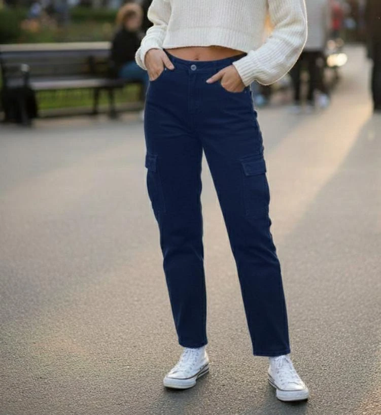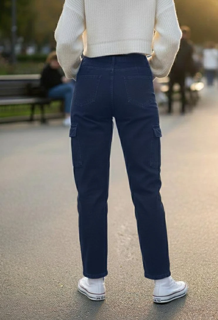 Add a sleek and versatile touch to your wardrobe with these navy blue high-waist cargo jeans. Designed in a straight fit with utility-style side pockets, they offer both comfort and modern street fashion. Made from durable, breathable denim, these jeans are perfect for daily wear, college outfits, or casual outings. Style them with sweaters, crop tops, or sneakers for a clean and confident look. 💙👖